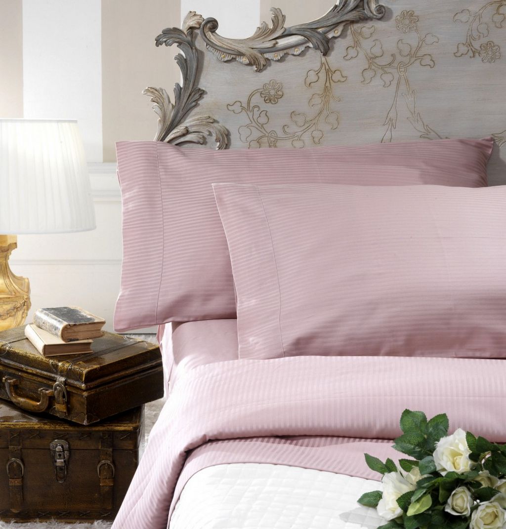 Completo letto matrimoniale in raso di puro cotone 100% con finissaggio dream silk